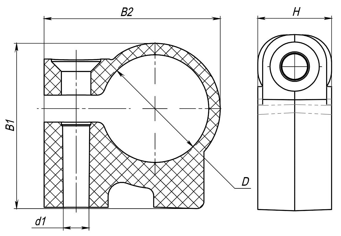 | Типоразмер, мм | D | d1 | B1 | B2 | H |